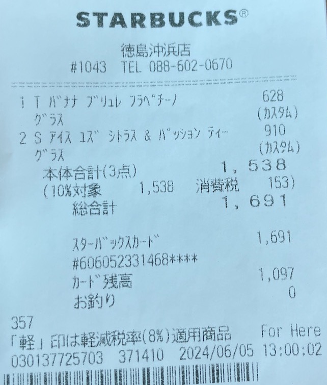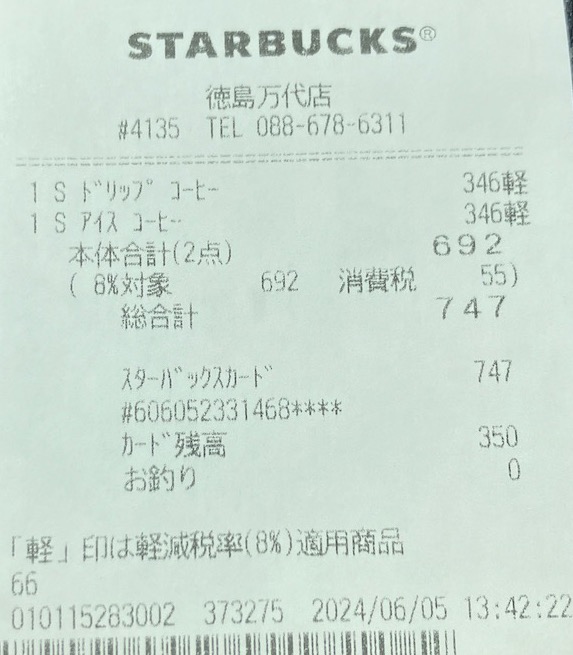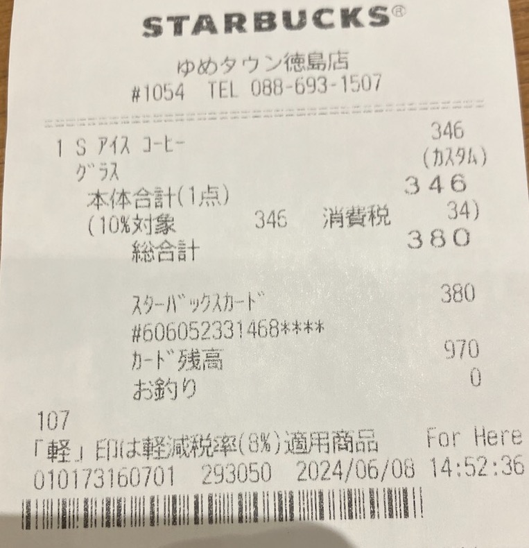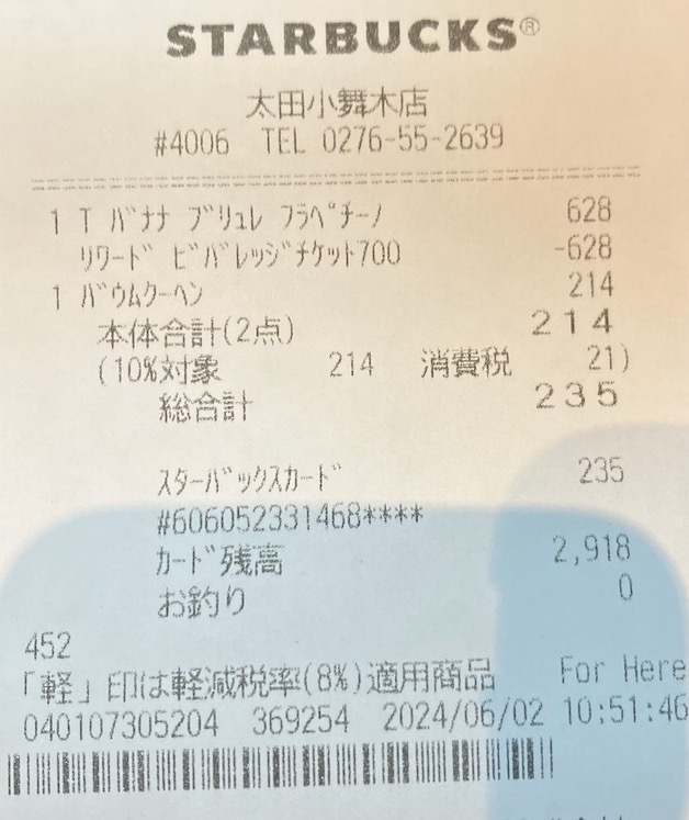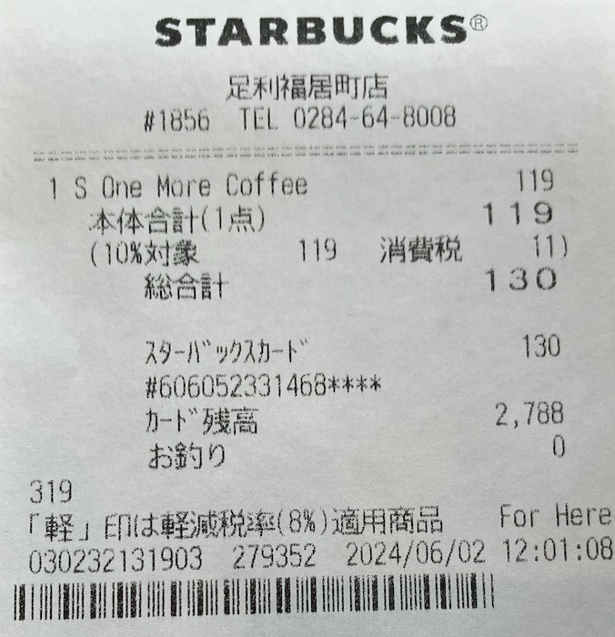 スタバのレシート