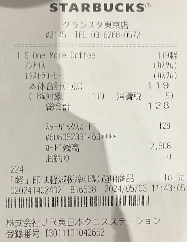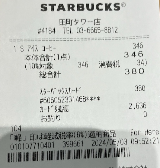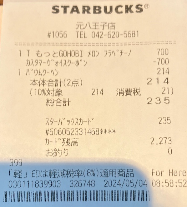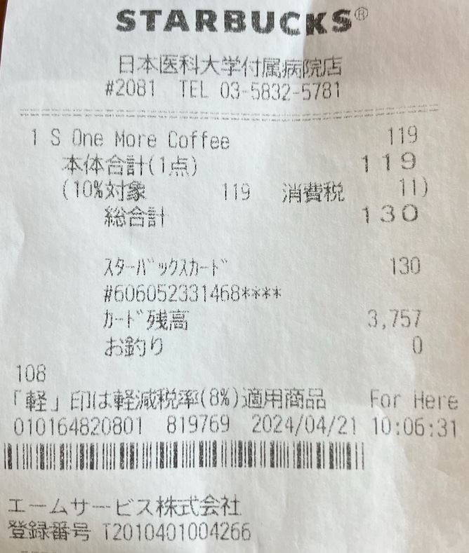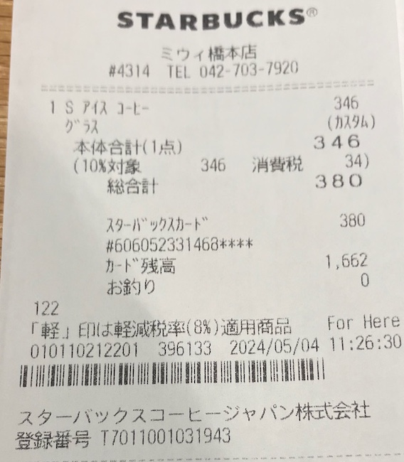 スタバのレシート