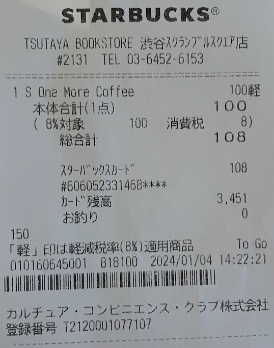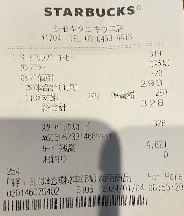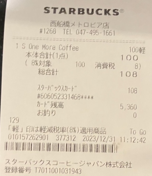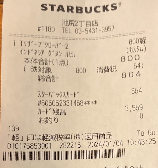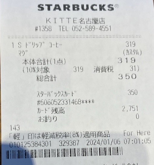 スタバのレシート