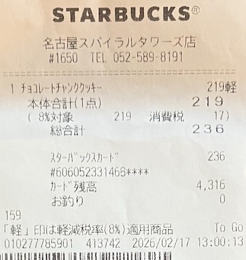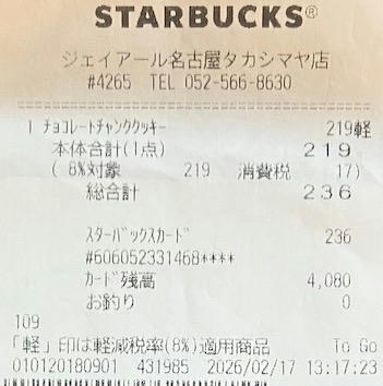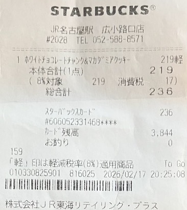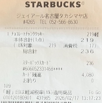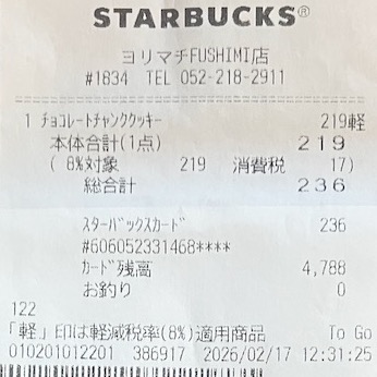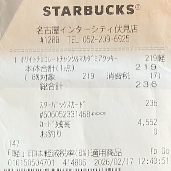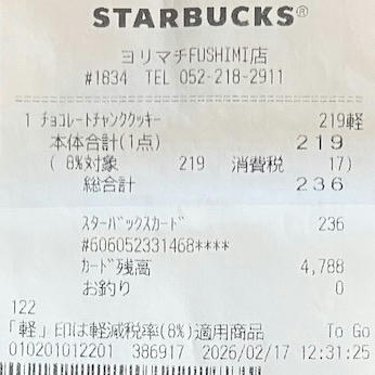 スタバのレシート