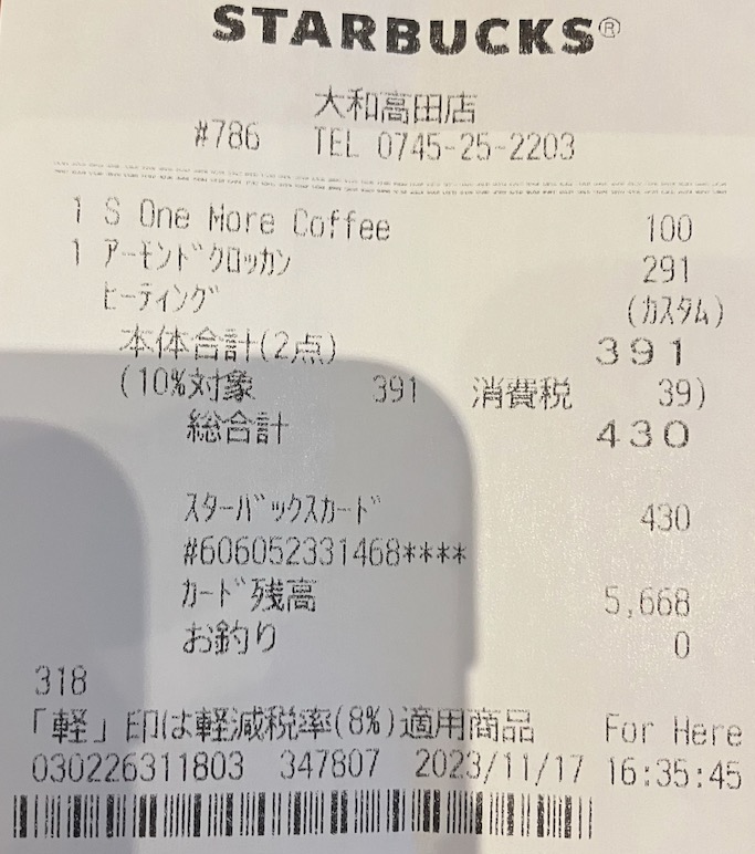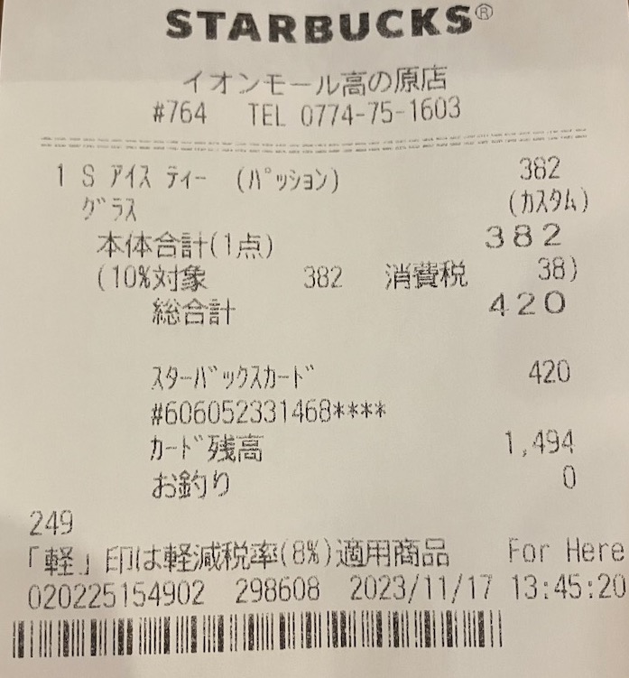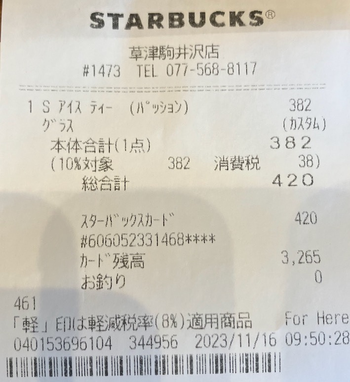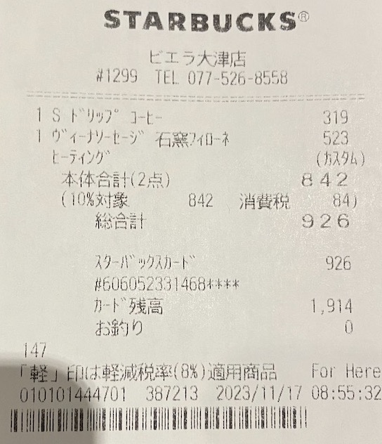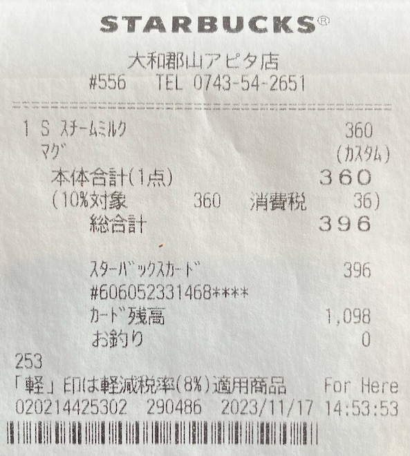 スタバのレシート