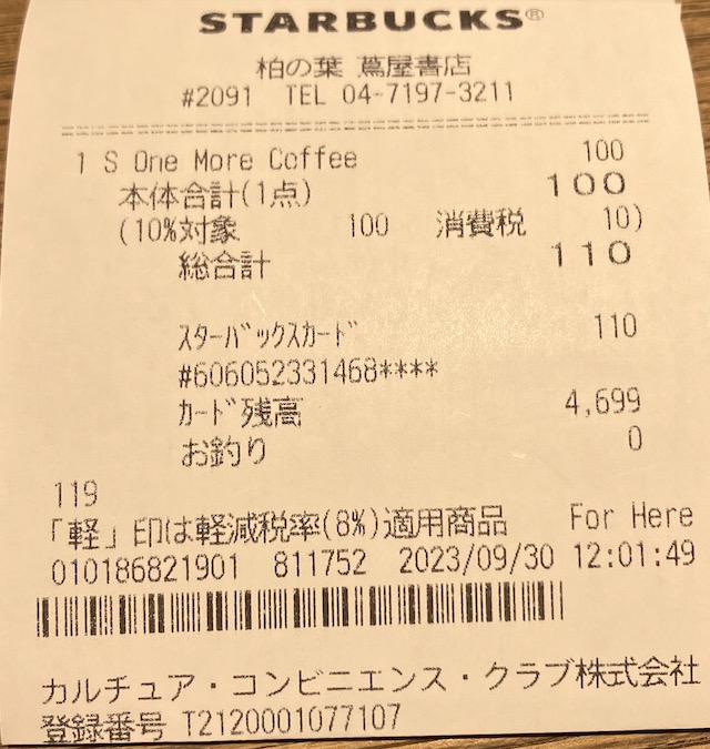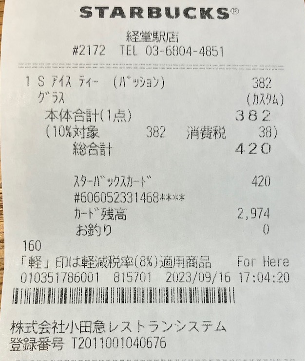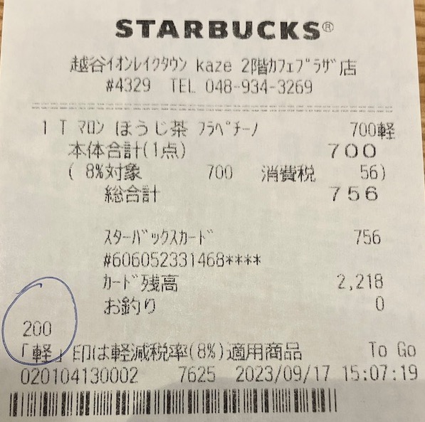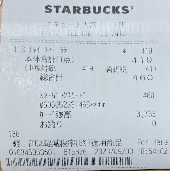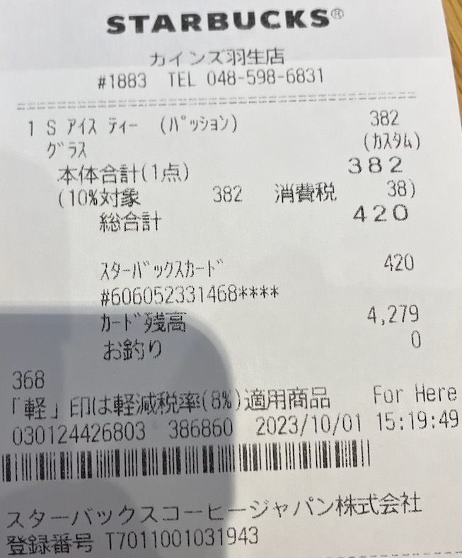 スタバのレシート