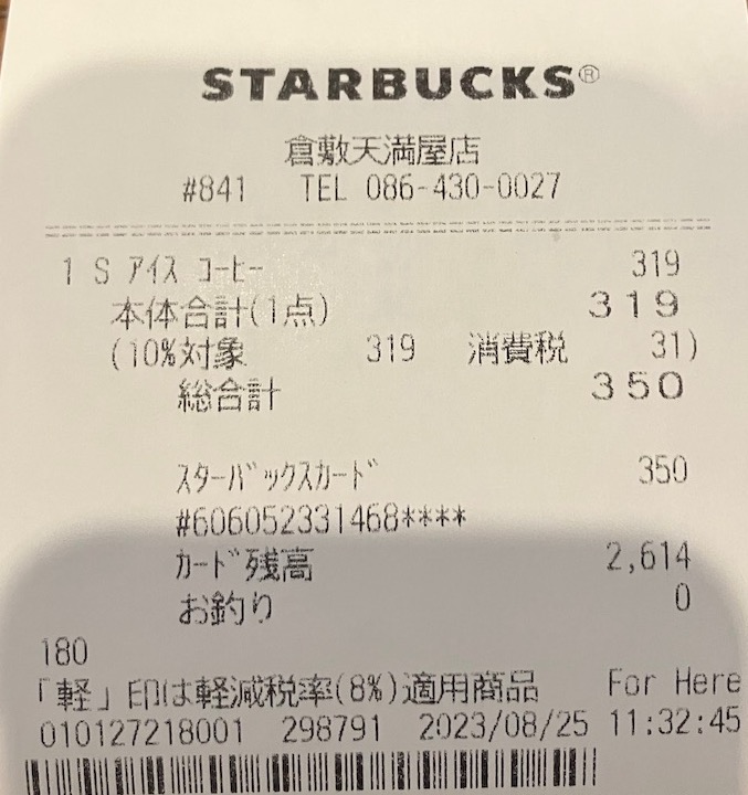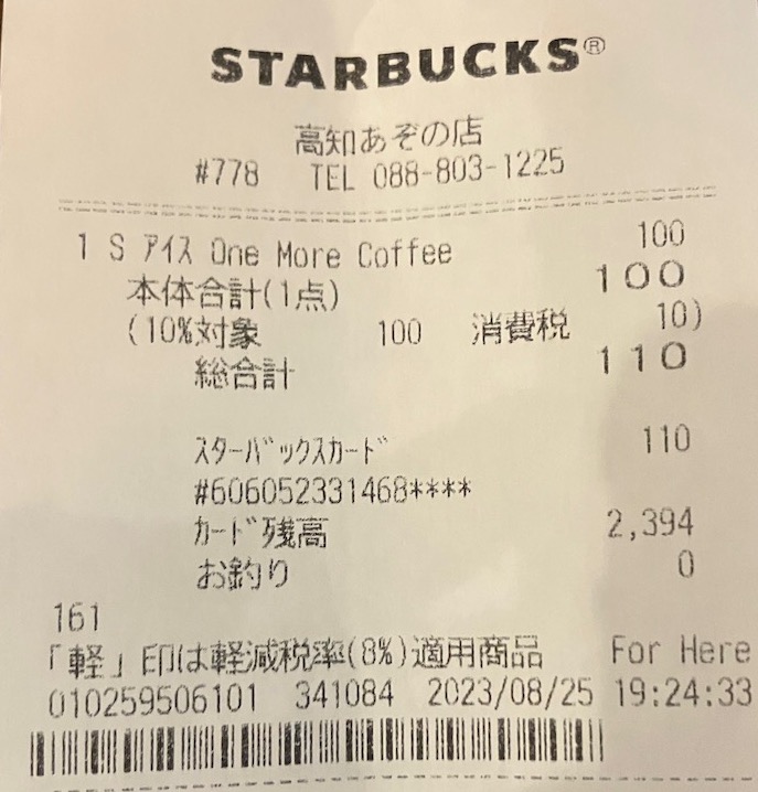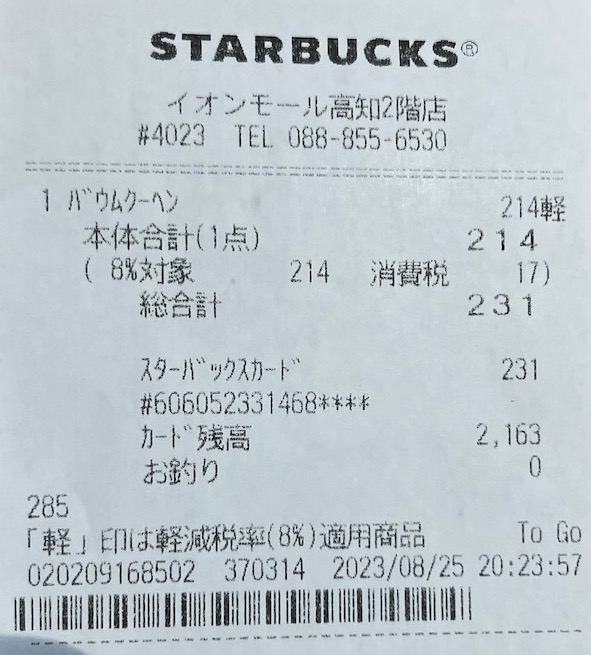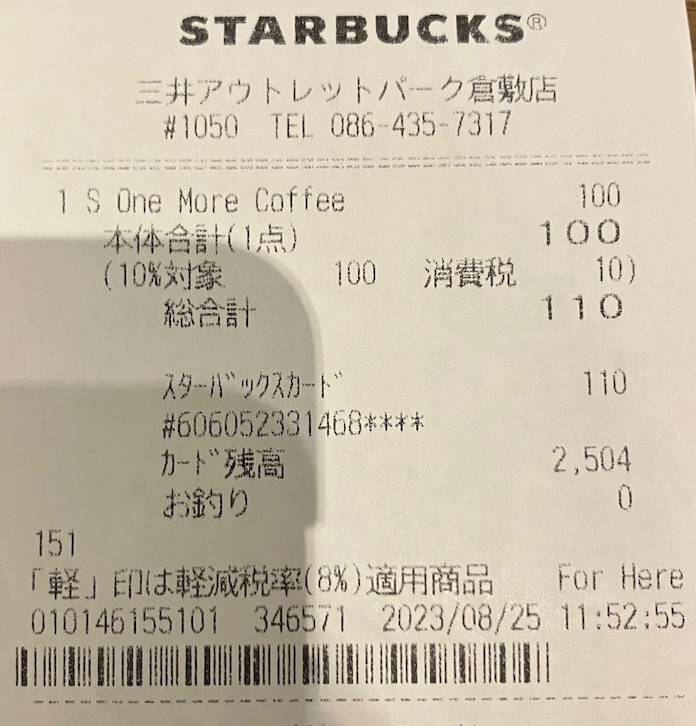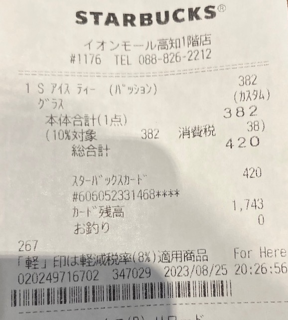 スタバのレシート