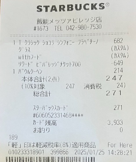 スタバのレシート