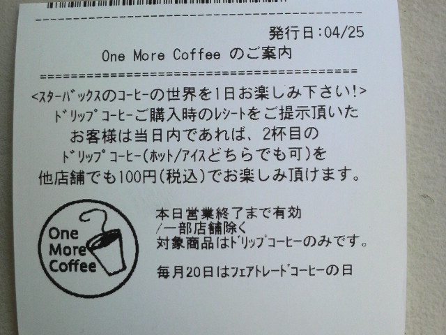 ちなみに,前回の「One More Coffee」仕様のレシート↓