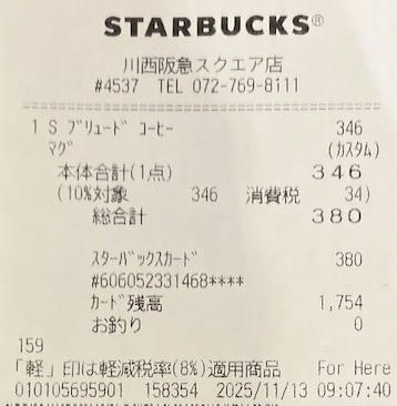 スタバのレシート