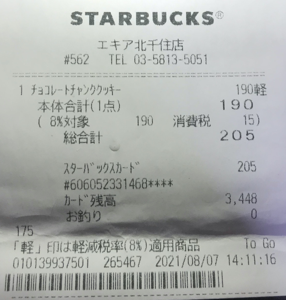 スタバのレシート