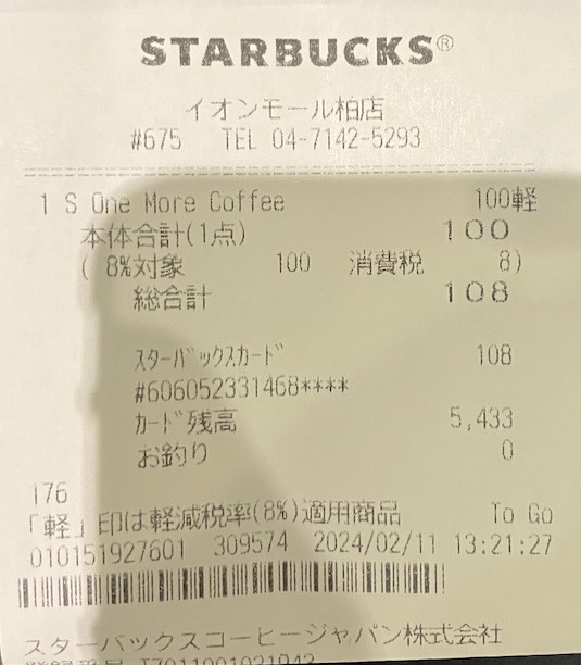 スタバのレシート